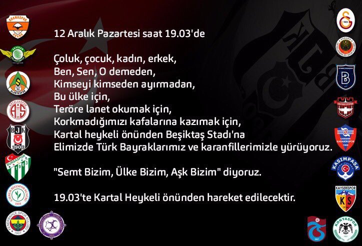 Takımlarına gönül veren taraftarlar ülkenin birlik ve bütünlüğü için tek ses olacak bu kez ellerinde sadece şanlı türk bayrağımız olacak.