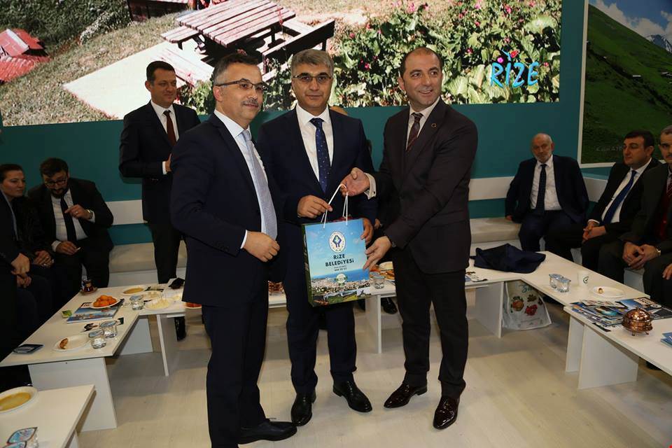Rize Valisi Kemal Çeber, EMITT Fuarında Rize’nin kültürü, tarihi, doğası, müziği, otantik mimarisi, Rize bezi dokumacılığı ve zengin mutfağının tanıtıldığı ‘Rize Standında’ misafirlerini ağırladı.
