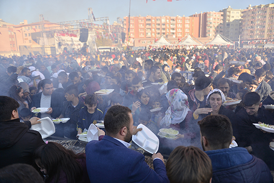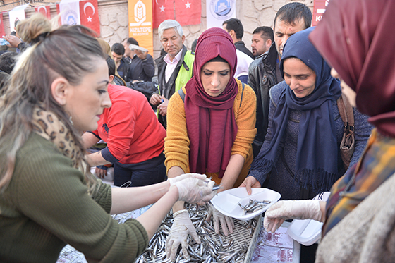 Kızıltepe ilçe otogarı alanında "Biriz, Beraberiz, Kardeşiz" sloganıyla düzenlenen festivale katılanlara yaklaşık 8 ton hamsi ve 800 Vakfıkebir ekmeği ikram edildi.