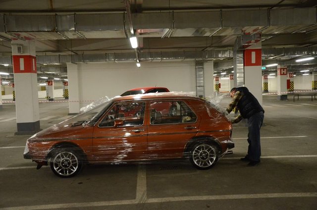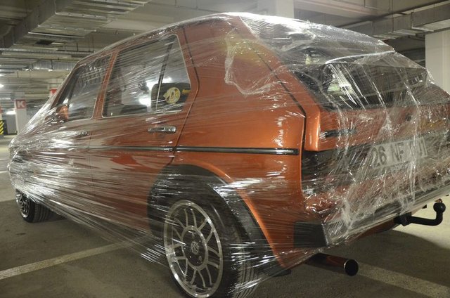 Eskişehir’de yaşayan Kerem Doğan isimli vatandaş, iz kalmaması için otomobilini her park ettiğinde streç film ile sarıyor.