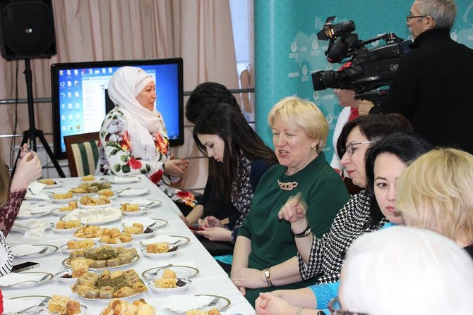 Geceye Başkonsoloslukta çalışan görevliler, Başkonsolos Turhan Dilmaç'ın eşi Anna Dilmaç, Tataristan Parlamentosu ve Rusya Duma'sından milletvekilleri, gazeteciler, Kazan'da bulunan çeşitli derneklerde çalışan yetkililer katıldı.Marmara Üniversitesi Öğretim Üyesi Prof. Dr. Kemalettin Kuzucu ve Tataristanlı gazeteci-yazar Ruslan Bişkov çay kültürü ve tarihi hakkında sunum yaptığı gecenin açılışında konuşan Anna Dilmaç Türkiye'deki çay geleneği hakkında misafirleri bilgilendirdi..jpg)