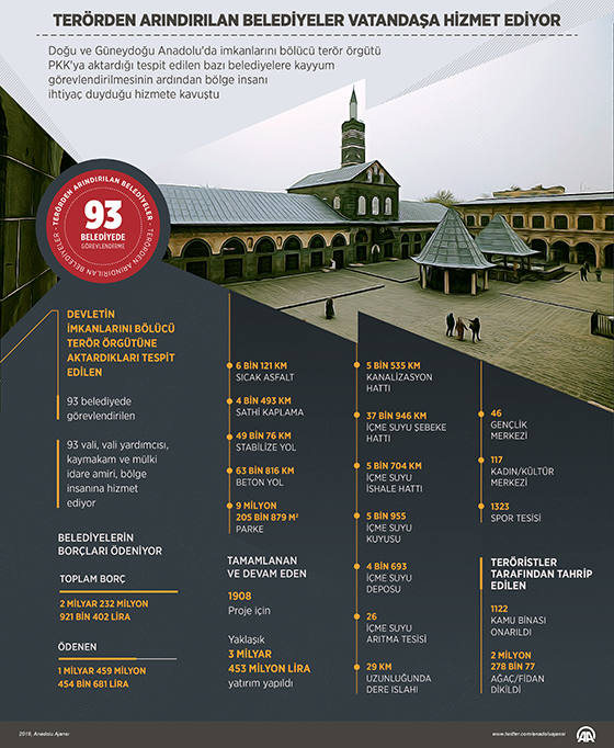 Doğu ve Güneydoğu Anadolu'da imkanlarını bölücü terör örgütü PKK'ya aktardığı tespit edilen bazı belediyelere kayyum görevlendirilmesinin ardından bölge insanı, ihtiyaç duyduğu hizmete kavuştu. Belediyelerin kamu ve piyasaya olan 2 milyar 232 milyon 921 bin 402 lira borcundan bir milyar 459 milyon 454 bin 681 lirası kayyum atamalarından sonra ödendi.