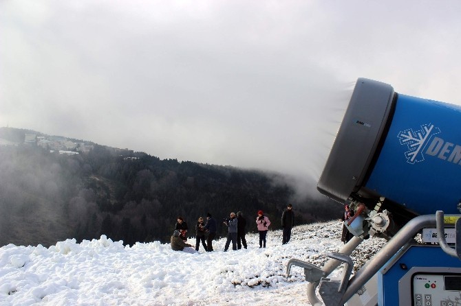 Bursa'da, Teleleferik A.Ş., aldığı kar püskürtme makinesiyle Uludağ’a kar yağmadan kar yağdırdı.