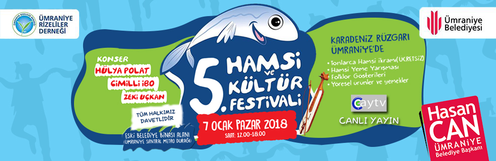 Ümraniye Belediyesi ve Ümraniye Rizeliler Derneğimiz tarafından düzenlenecek olan 5. Hamsi ve Kültür Festivalimiz yarın 12:00-18:00 saatleri arasında Eski Belediye binası alanında (Ümraniye santral Metro durağı) gerçekleştirilecektir.Çay TV'Den de naklen yayınlanacak etkinliğe Ümraniye Beldiye Başkanı Hasan CAN bütün vatandaşları bu renkli karadenizin coşkusunun yer alacağı etkinliğe davet etti.Festival Çay TV ekranlarından saat 13:00den itibaren naklen yayaınlanacak..jpg)