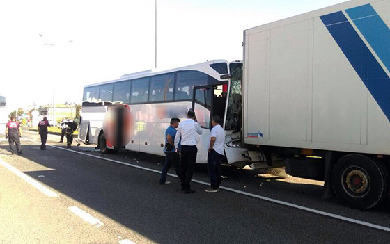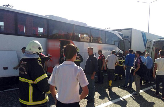 Alınan bilgiye göre, Rize'den İstanbul'a giden İbrahim Tüfek yönetimindeki 53 HP 311 plakalı yolcu otobüsü, Ünye-Fatsa Devlet Sahil Yolu Yüceler mevkisinde, aynı yönde seyreden Sabri Cebeci idaresindeki 61 S 1215 plakalı yolcu otobüsüne arkadan çarptı.
