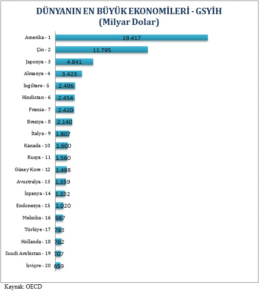 Tahminlere göre, 2020’li yıllara gelindiğinde Türkiye dünyanın 12. büyük ekonomisi, Güney Kore ise dünyanın 14. büyük ekonomisi olacak. Bu gelişmenin ortaya çıkmasında ülkelerin nüfusları ve nüfus artış hızları da önem taşıyor. Çünkü yaşlı ve genç nüfus oranının düşük olduğu bir ülkede tüketim, yatırımlar dolayısıyla ekonomi küçülme eğilimine girecektir.