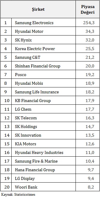 Burada öncelikle şunu vurgulamak gerekir ki Borsa İstanbul'da işlem gören şirketlerin bugün itibari ile toplam değeri dolar bazında yaklaşık 190 milyar dolar seviyesinde iken sadece Samsung Elektroniğin piyasa değeri 254 milyar dolar seviyesinde. Sadece bir şirketin değeri Borsa İstanbul’un değerinin üzerinde. Tabi burada Samsung’un akıllı telefondan, beyaz eşyaya, robotlardan yeşil enerjiye kadar birçok alanda yatırım ve AR-GE yaptığını vurgulamak gerek.